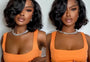 Meet Wave Babe — your go-to short bob for soft, natural waves and effortless style. Made from 100% Brazilian Remy human hair, this glueless lace frontal wig melts seamlessly with your skin for a flawless, lightweight finish. Style it, dye it, and slay it — no glue, no stress, just pure confidence.
